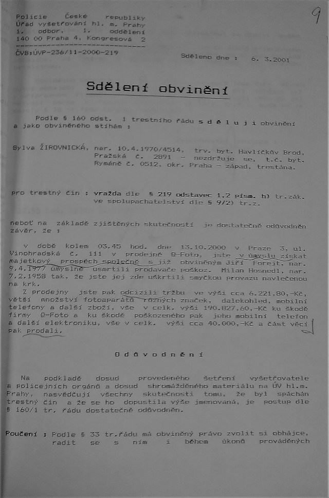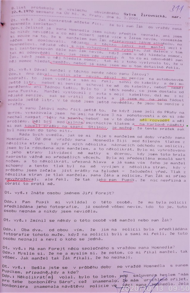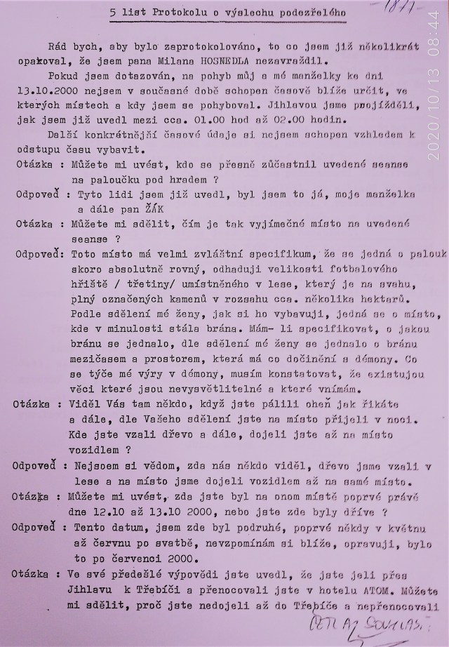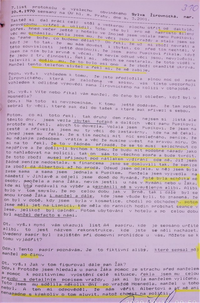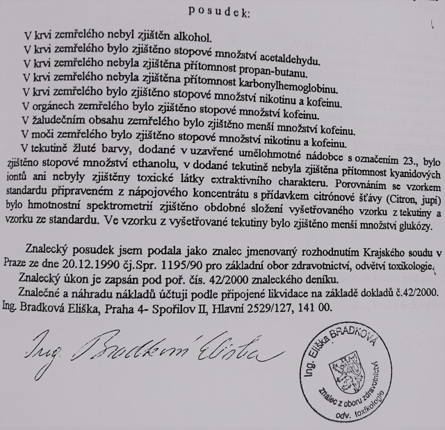 Ano, přiznávám, že když se mi dostala tato její „výpověď“ do rukou, v době, kdy už jsme znal základní fakta ze spisu o době úmrtí, a další detaily, tak jsem se upřímně rozesmál, neboť, při mých znalostech trestního řádu, jsem opravdu nepředpokládal, že by někdo takovým pohádkám mohl uvěřit.
