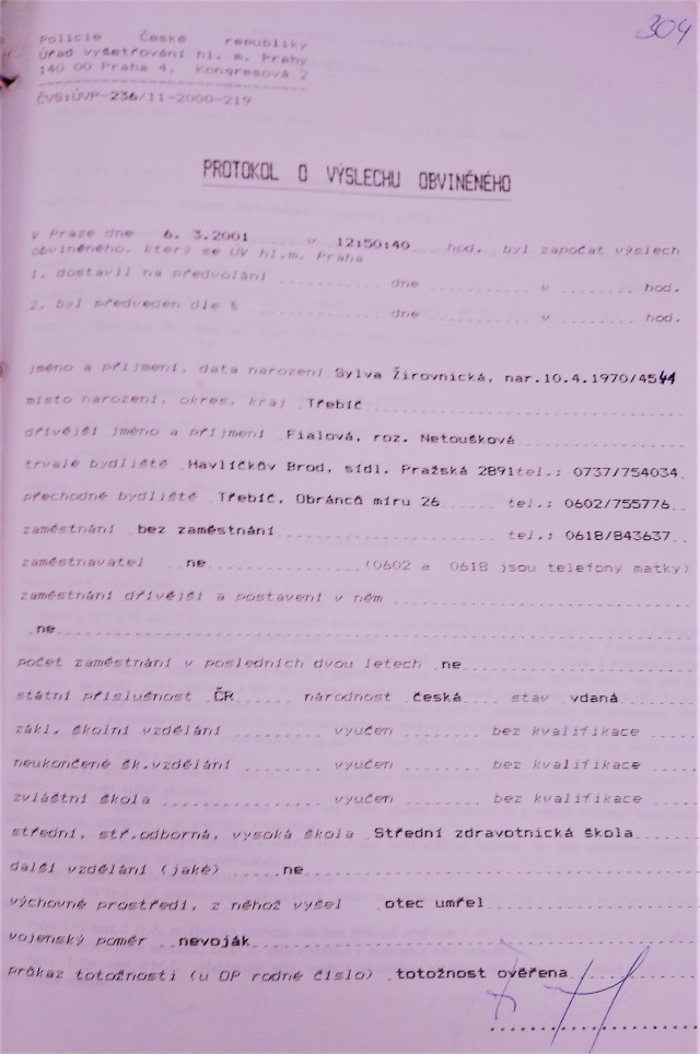 Pak na tomto listu povídá, jak mi telefonovala na mobil. Bohužel, v tu dobu jsem žádný mobilní telefon nevlastnil. S tímto se následně vyšetřovatel vypořádal tak, že na jistém „Úředním záznamu“ tvrdil, že „jsem asi měl jiný mobilní telefon“, poté, co zjistil, že můj mobilní telefon jsem si pořídil až 16.října 2000.