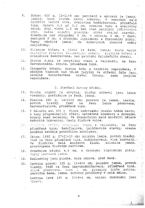 Co mě však nenapadlo, a nemohl jsem to tušit, že, podle „této výpovědi osoby obviněné, která nemusí vypovídat pravdu“ policajti nechají dokonce změnit Pitevní protokol, a postaví na tom všem svá „skutková zjištění“.