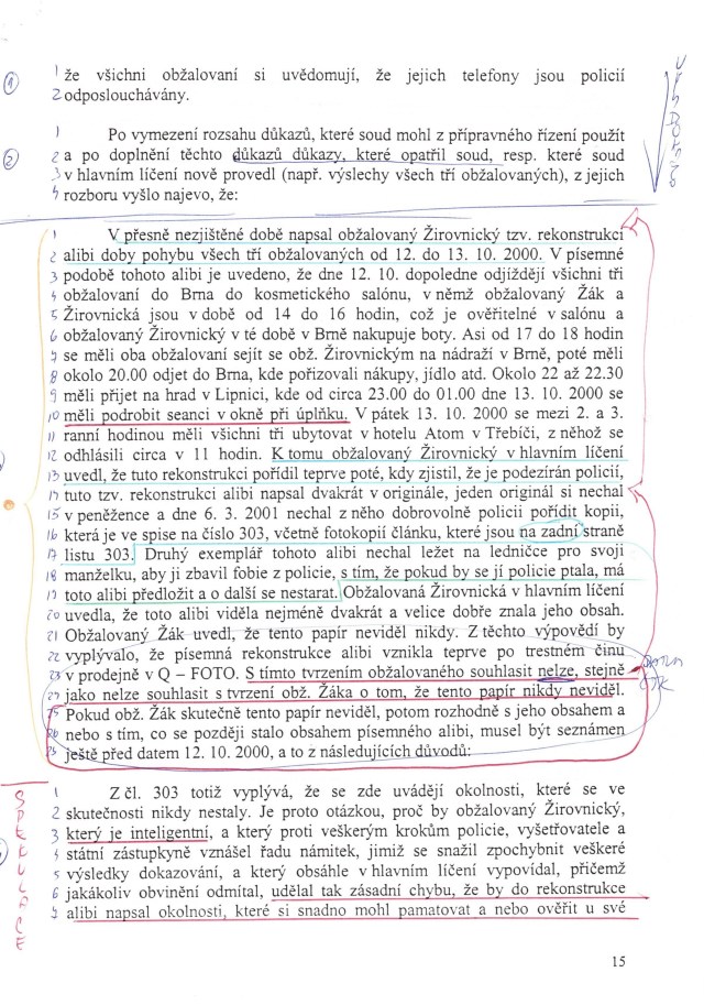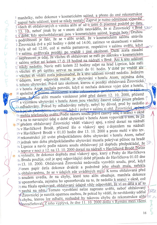 Z článků totiž lze vyčíst, kdy asi tak byl Pišta zavražděn. Absurdita toho všeho se pak promítla do rozsudku Městského soudu v Praze ze dne 25.3.2002, kde bylo „soudem zjištěno, že jsem ono alibi dopředu připravil ještě před činem (asi včetně oněch novinových článků, které vyšly až po činu)“. Toto je prvek, který stojí za to, aby byl doložen, a tak přikládám Přílohu I) – označeno modře, což je část onoho rozsudku, k jehož celému uveřejnění se ještě dostanu.
