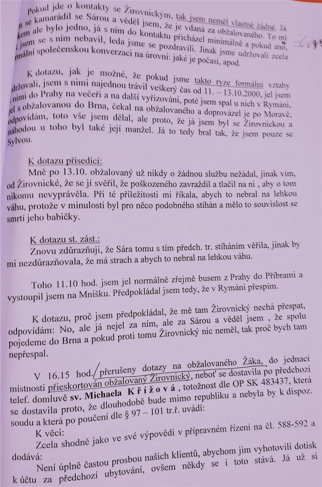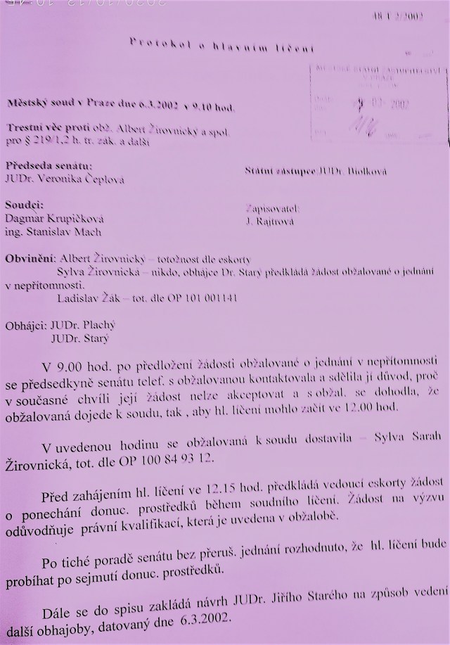 Co však mohu poskytnout je Protokol o výslechu mé ex manželky, a následně L. Žáka, před Městským soudem v Praze ze dne 6.3.2002, a to jako Přílohu C).