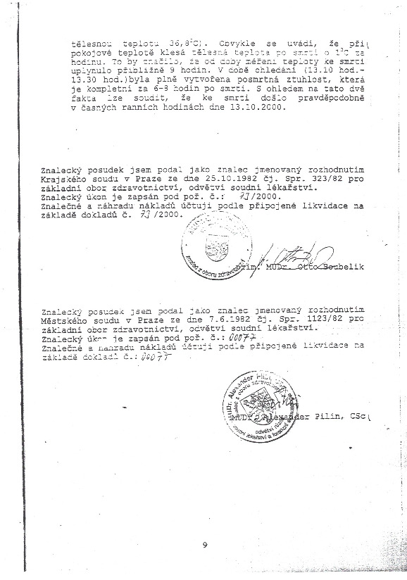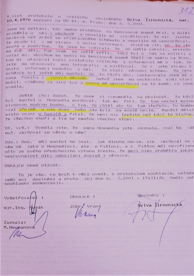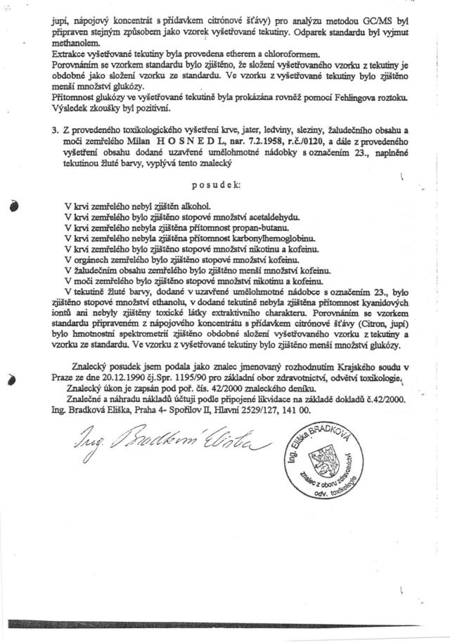 Ano, přiznávám, že když se mi dostala tato její „výpověď“ do rukou, v době, kdy už jsme znal základní fakta ze spisu o době úmrtí, a další detaily, tak jsem se upřímně rozesmál, neboť, při mých znalostech trestního řádu, jsem opravdu nepředpokládal, že by někdo takovým pohádkám mohl uvěřit.