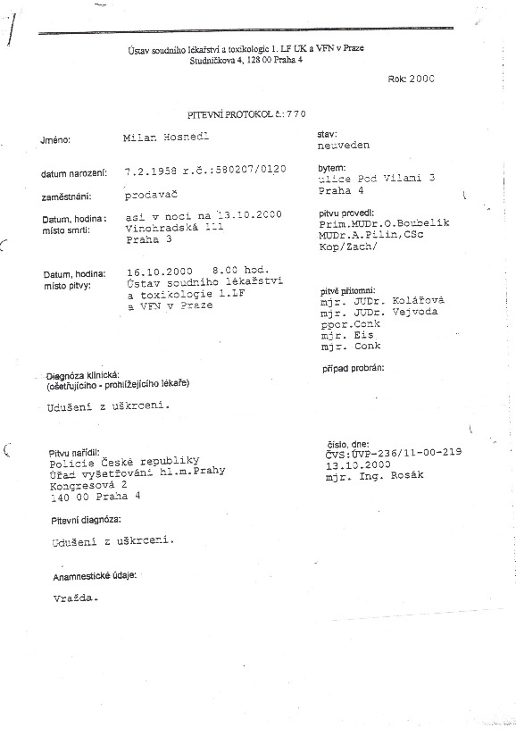 Co mě však nenapadlo, a nemohl jsem to tušit, že, podle „této výpovědi osoby obviněné, která nemusí vypovídat pravdu“ policajti nechají dokonce změnit Pitevní protokol, a postaví na tom všem svá „skutková zjištění“.