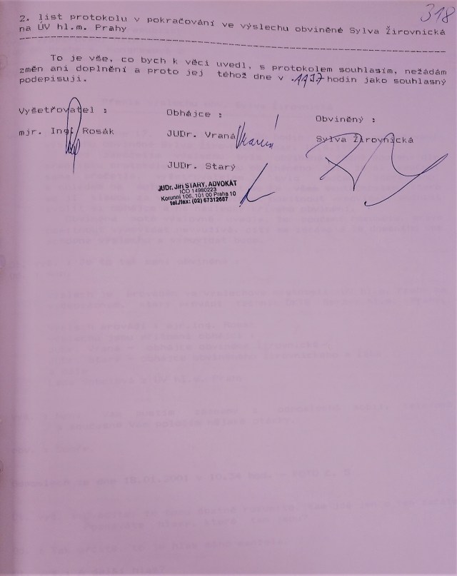 Co však mohu poskytnout je Protokol o výslechu mé ex manželky, a následně L. Žáka, před Městským soudem v Praze ze dne 6.3.2002, a to jako Přílohu C).