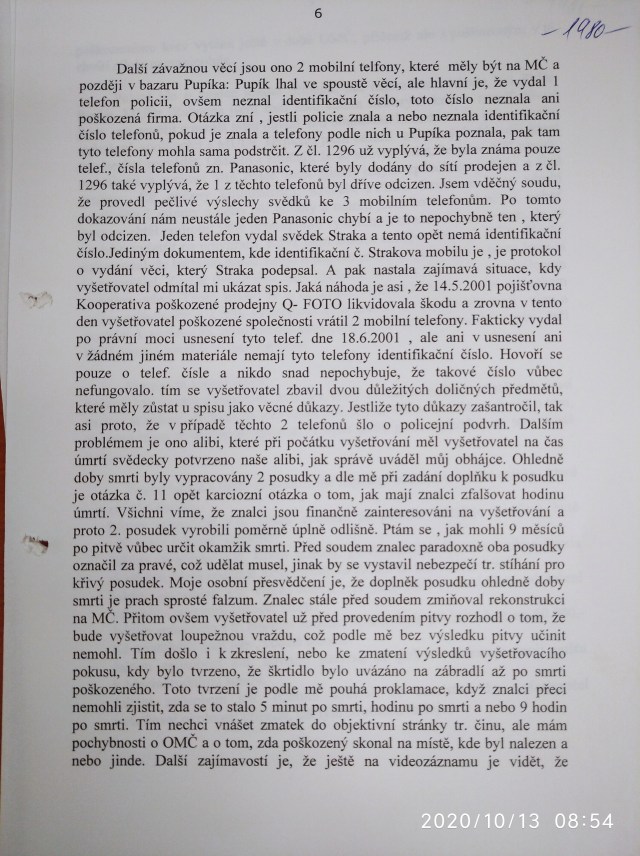 Jestliže tedy tvrdím a tvrdil jsem i tehdy, že celé přípravné řízení bylo prováděno NEZÁKONNĚ, nebylo na mě, abych jakýmkoliv způsobem verifikoval informace z nezákonných výpovědí pořízených Policií ČR, když POVINNOST dokázat mi vinu, tedy alespoň můj pohyb na místě činu v době smrti Pišty, BYLA NA STÁTNÍM ZASTUPITELSTVÍ.